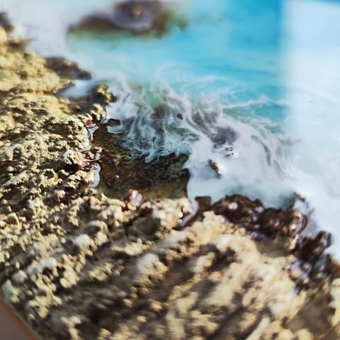 Todas mis obras llevan varias capas de resina y texturas. Cada capa de resina es una búsqueda de profundidad. Trabajo con resinas y pigmentos de alta calidad.